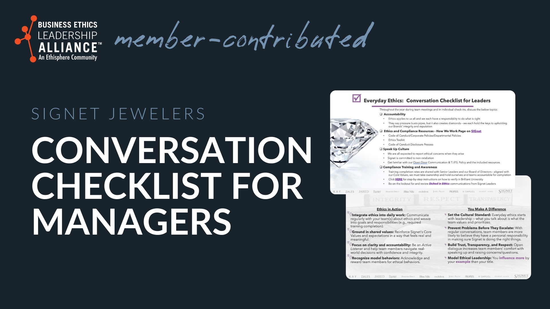 Signet Jewelers shares their guidance for managers to facilitate conversations on E&C with their teams.